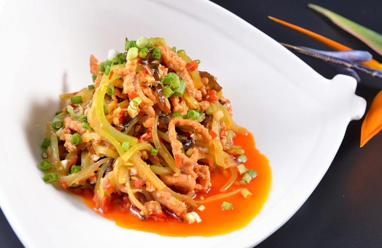 鱼香肉丝,是一道汉族特色传统名菜,以鱼香味调味而得名,属于川菜。相传灵感来自泡椒肉丝,民国年间则是由四川籍厨师创制而成